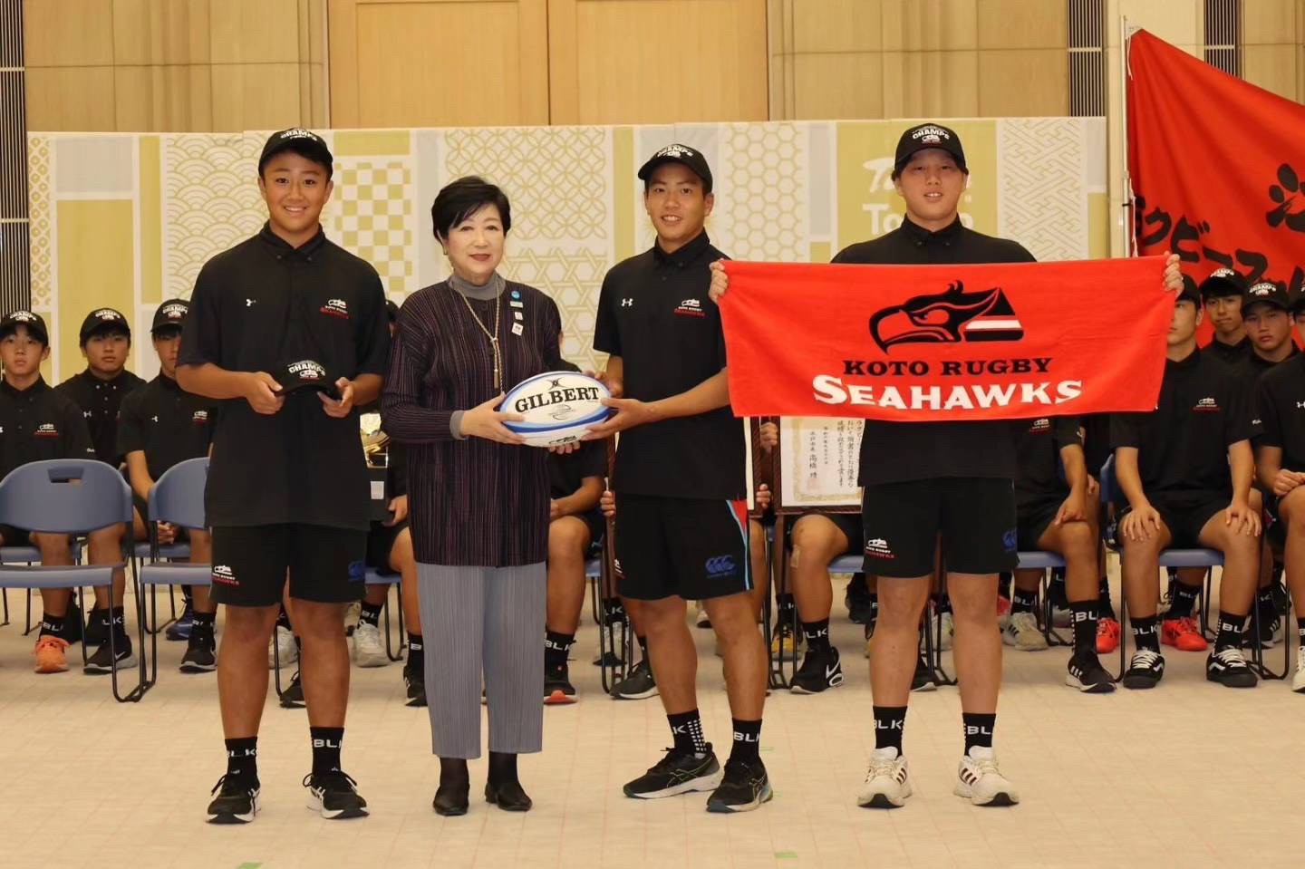 小池百合子東京都知事を表敬訪問し、優勝報告を行いました。